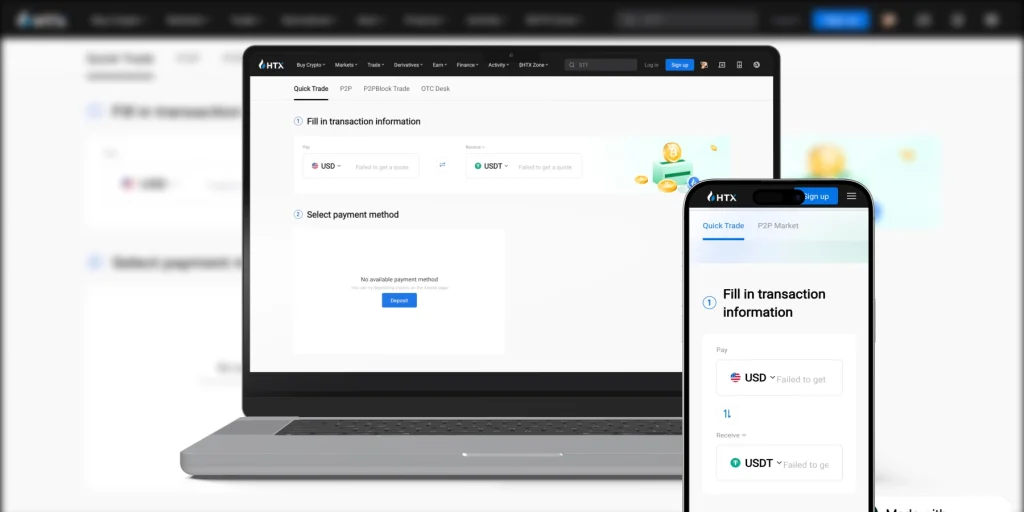 On the other hand, you can buy crypto with your debit or credit cards while using this exchange’s Quick Trade platform. The best thing about using cards is they facilitate instant purchases. Moreover, these payment methods are available in most European countries, New Zealand, Kazakhstan, Indonesia, and many other jurisdictions. Please note that HTX only allows people from the UK, Poland, Gibraltar, and Australia to use MasterCard.